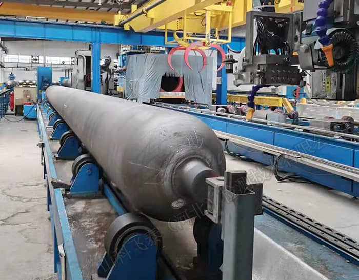 長管拖車用大容積鋼制無縫氣瓶由于長度和體積都較大,如果采用接觸法手工探傷,不僅探傷效率低下,還會因為